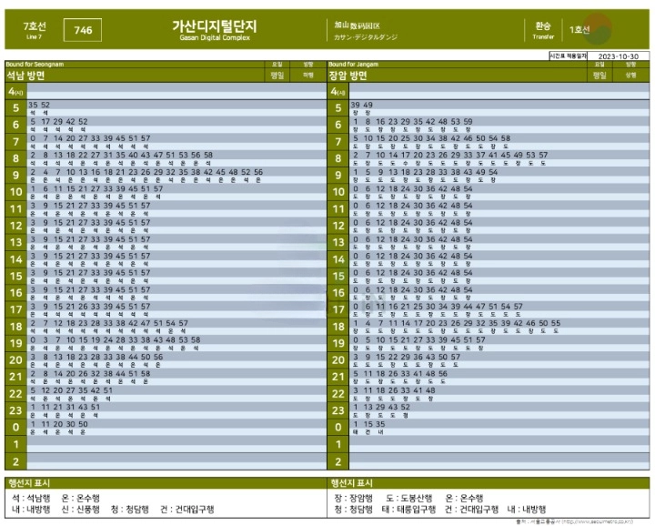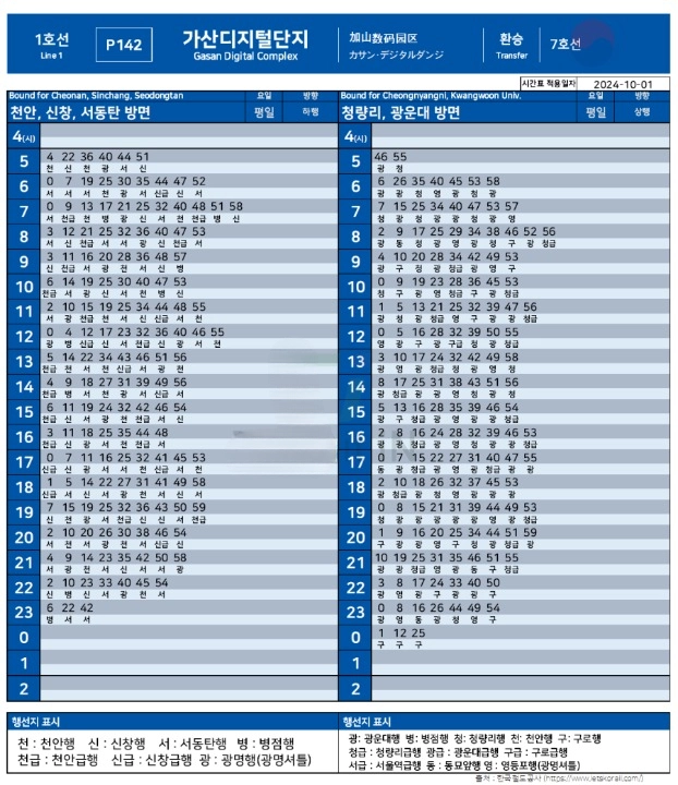 가산디지털단지역 전철 급행시간표 1호선 7호선