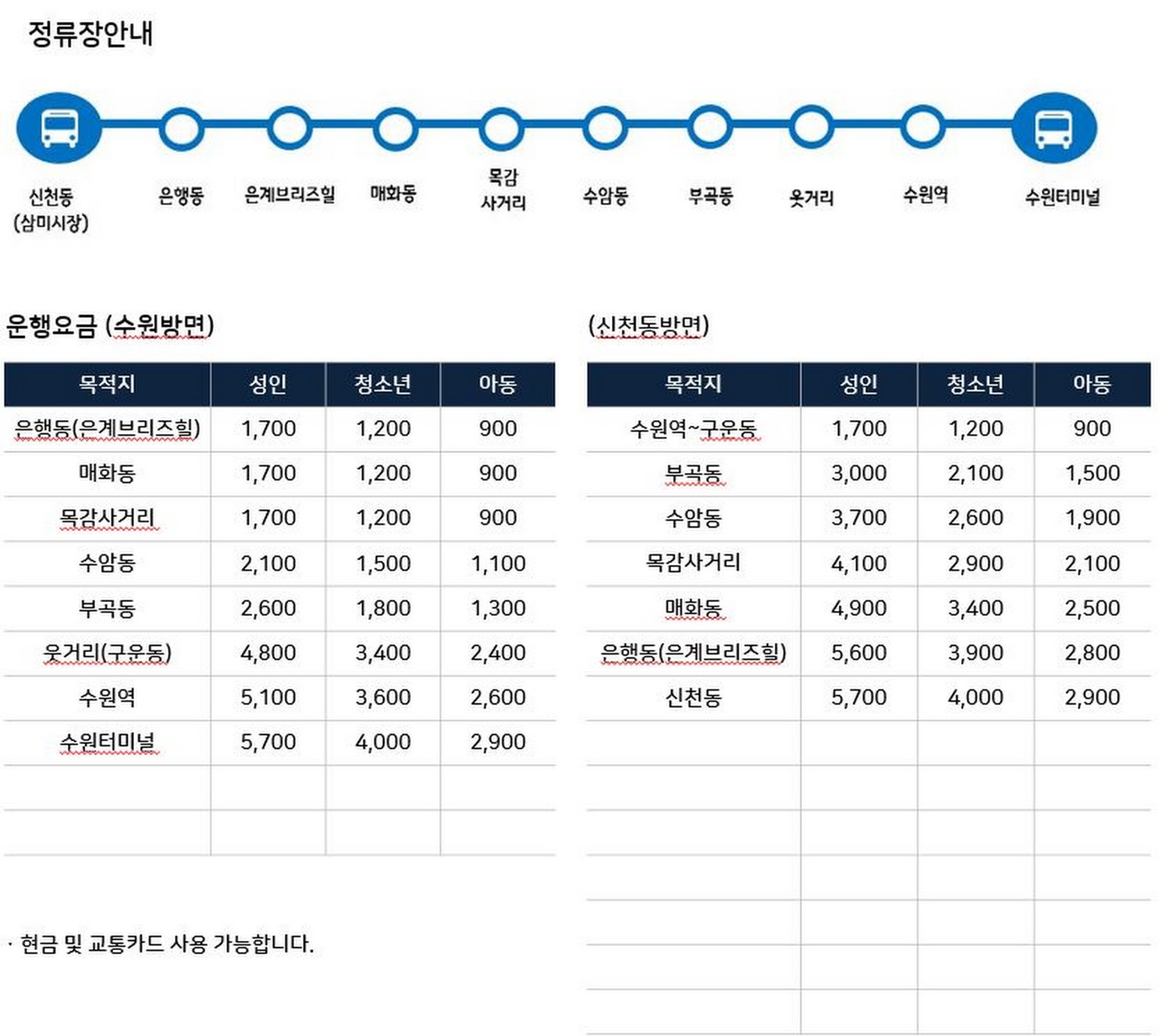 ※정류장별 자세한 요금은 아래 홈페이지에서 확인할 수 있습니다.